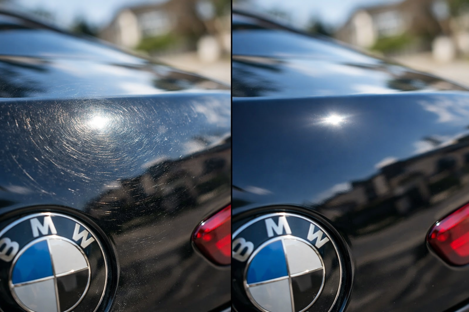 Schwarzer Lack ist das Worst-Case-Szenario für jeden Kratzer. Jede Kleinigkeit ist sofort sichtbar. Der BMW hatte mehrere feine Haarlinien sowie zwei deutlichere Parkplatzkratzer an der hinteren Stoßstange.